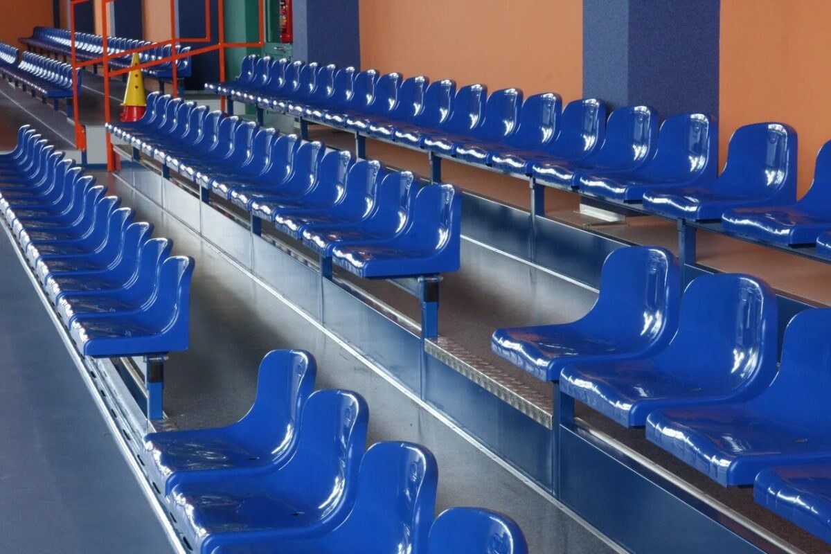 Стационарные трибуны представляют собой устойчивое металлическое сооружение. Трибуны такого вида являются цельной металлической установкой. Эксплуатируются в случаях, когда не требуется использование посадочных мест в разных зонах, потому, что быстрая разборка и транспортировка такой трибуны невозможна.