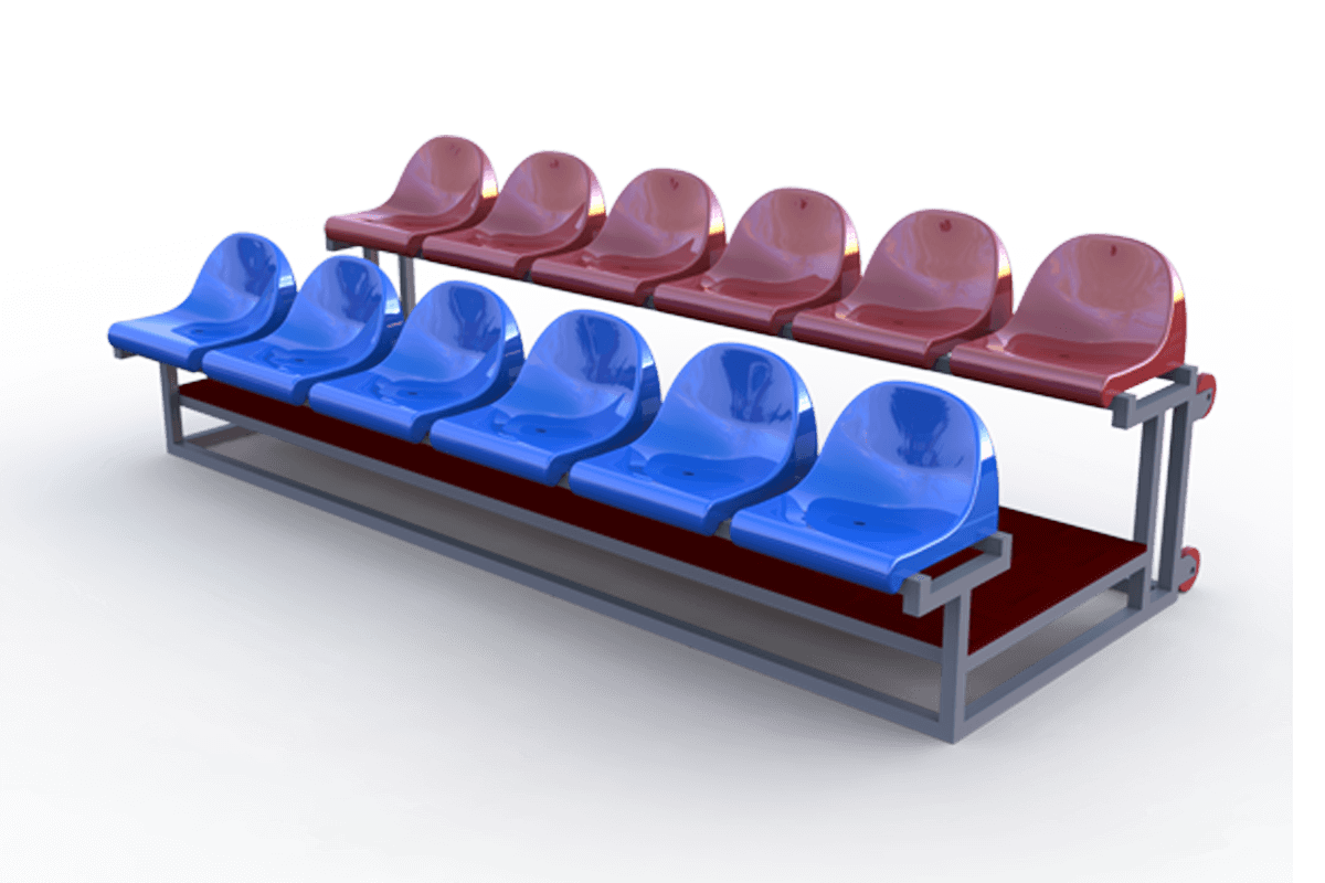 Разборная трибуна – это металлическая конструкция, части которой собираются между собой при помощи болтового соединения. Такие конструкции считаются самыми универсальными и удобными в эксплуатации. Зрительская трибуна такого типа может состоять из неограниченного количества рядов и проходов, быть приспособлена под любую площадь. В качестве напольного основания лестничного прохода и прохода между рядами применяются такие материалы как: листы металла или влагостойкая ламинированная фанера. Металлическая основа окрашивается в любой цвет по заданию заказчика.