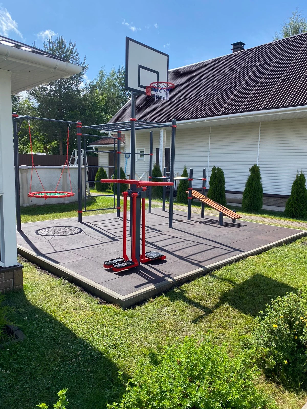 Комплексное спортивное оборудование во дворе частного дома, выполненное по индивидуальному заказу- это мечта! У вас будет полноценная спортивная площадка прямо у себя во дворе.
